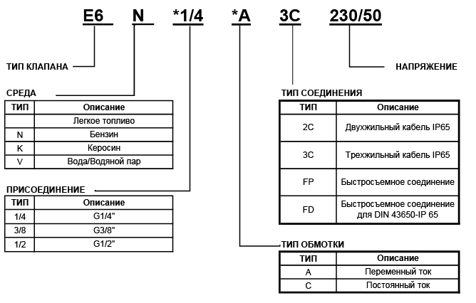 В соответствии с суффиксом в названии они применяются для легкого топлива (нет суффикса), для керосина ("K"), для бензина ("N") и для воды/водяного пара ("V").