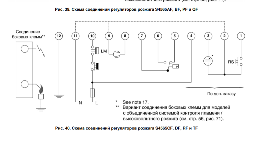 Регуляторы розжига серии S4565CF 1003 на напряжение 220/240 В~ могут непосредственно включаться в электрическую цепь газового регулятора серии VK41...