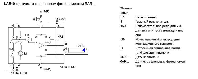 Контроль пламени в сочетании с детекторами с селеновым фотоэлектрическим элементом RAR.